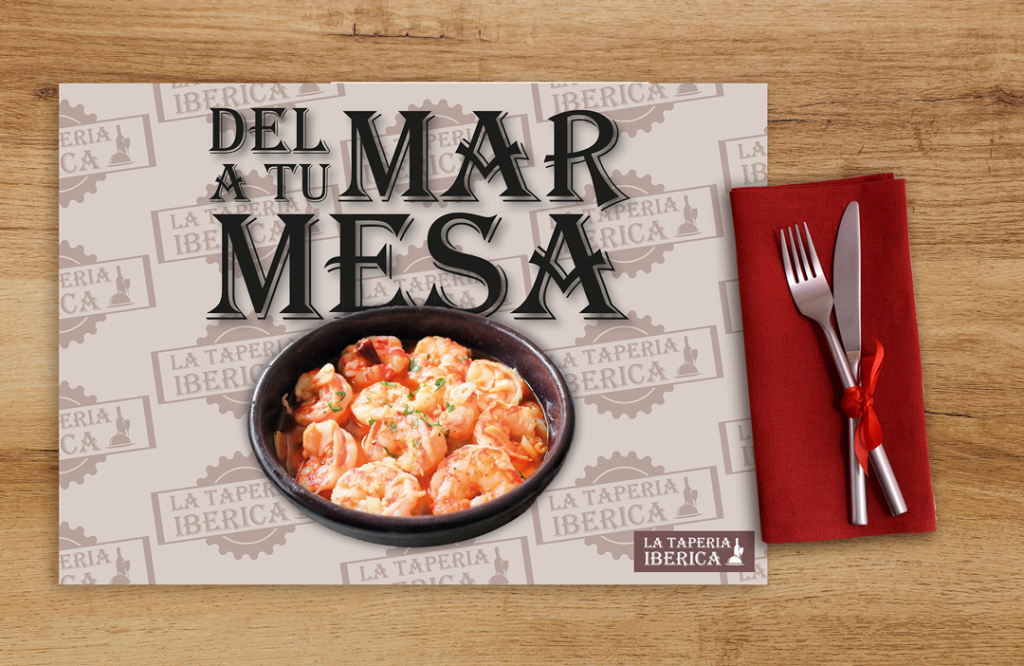 La Tapería Ibérica es un bar tradicional español que ofrece auténtica comida y bebida españolas. Su logotipo refleja la esencia de la cultura con una tipografía antigua, un plato de gastronomía española,  un vaso y una botella de vino en un diseño  reconocible.